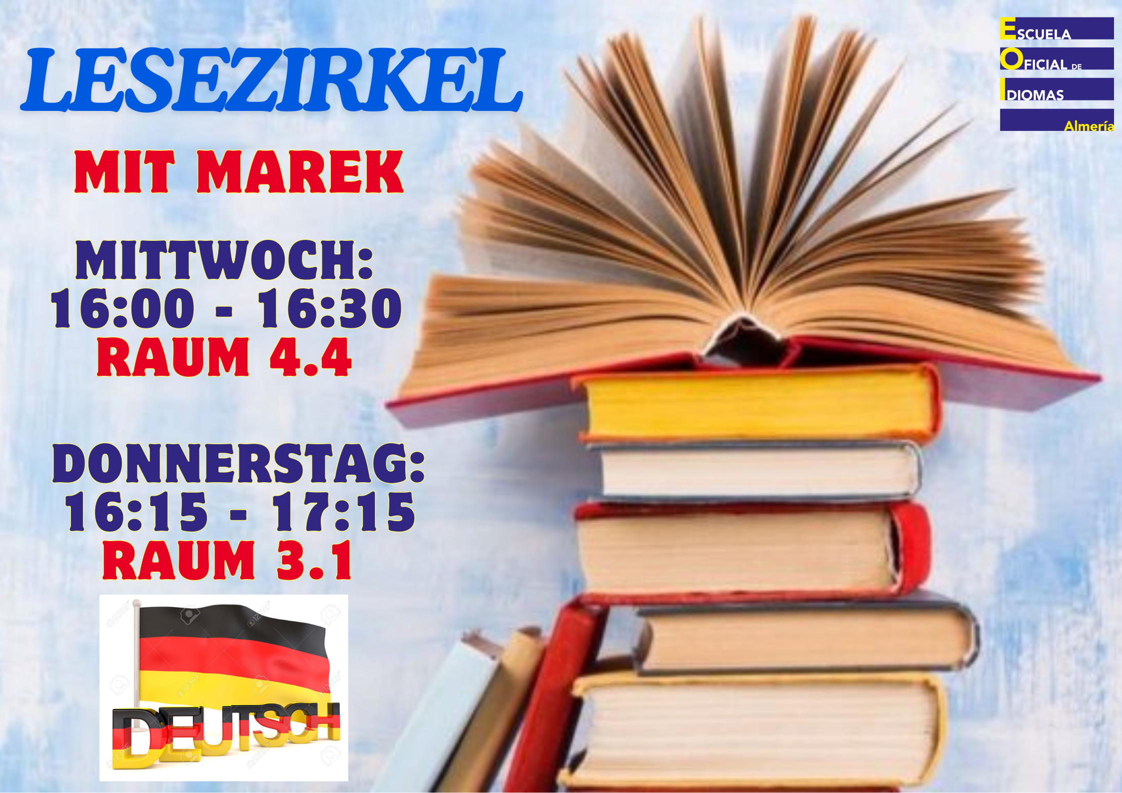 Lust auf spannende Texte, neue Wörter und interessante Gespräche auf Deutsch? Dann mach mit beim Lesezirkel mit Marek! Ab Montag, 16.02.2026, bis April gibt es die Gelegenheit, Texte zu lesen, über die Inhalte zu sprechen und die Sprache aktiv zu üben, entspannt und ohne Druck.